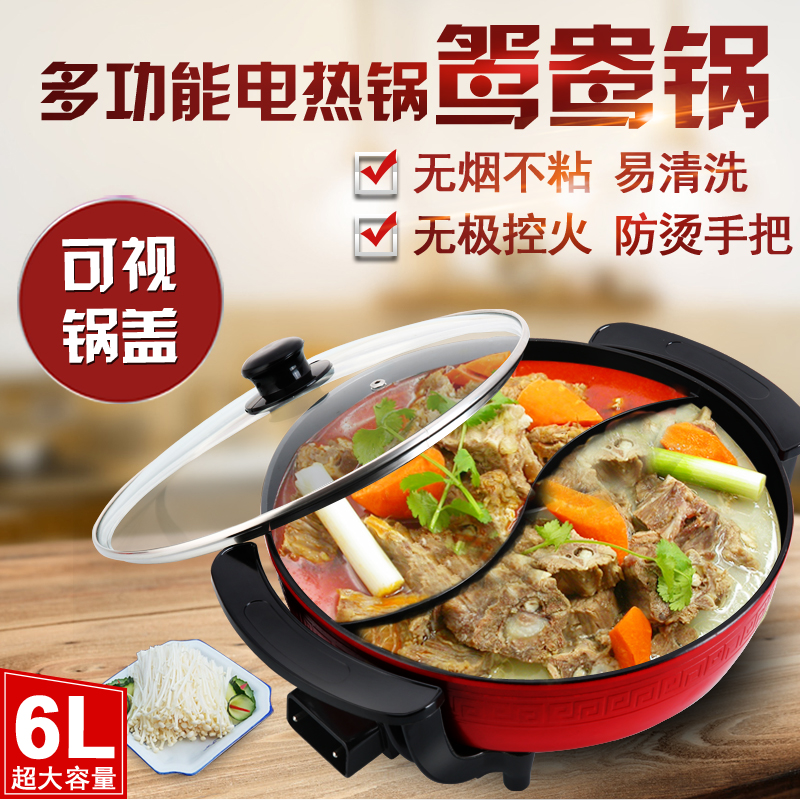 鸳鸯电火锅大红双喜韩式多功能电煮锅家用火锅锅电热锅电涮不粘锅