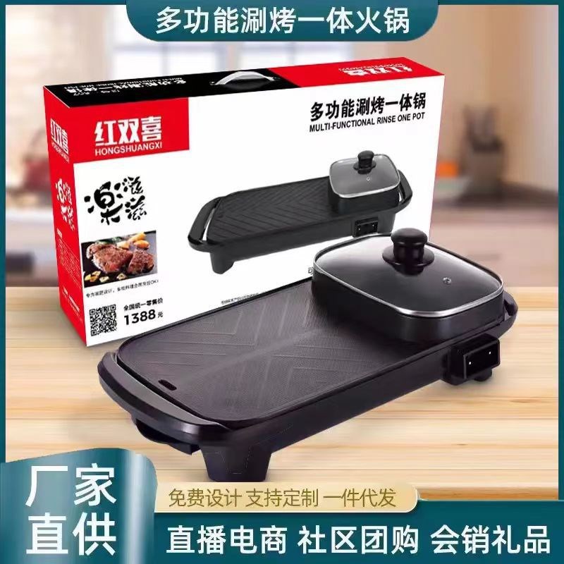 红双喜多功能涮烤一体电热锅一锅两味养生锅开业赠品活动礼品定制