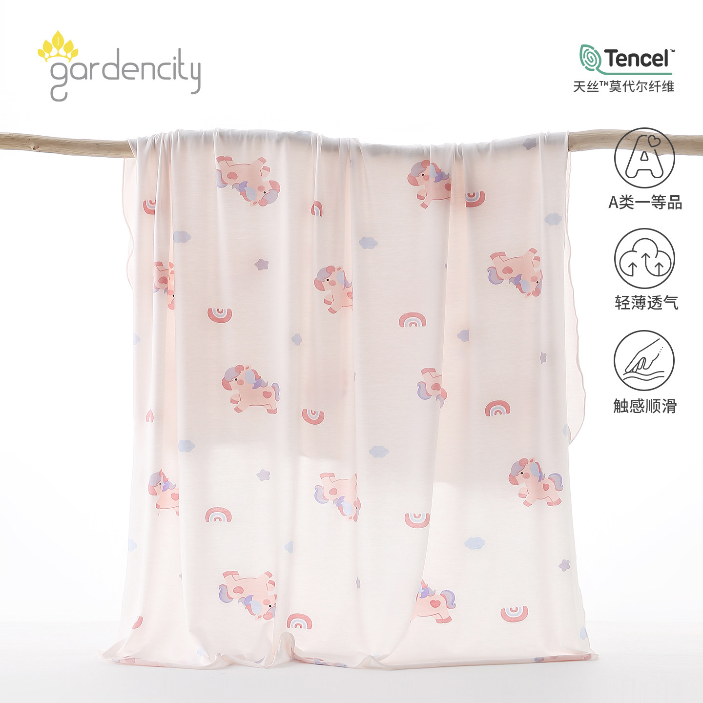 婴儿盖毯莫代尔夏季薄款彩虹小马年新生儿包单女宝宝空调夏凉被子