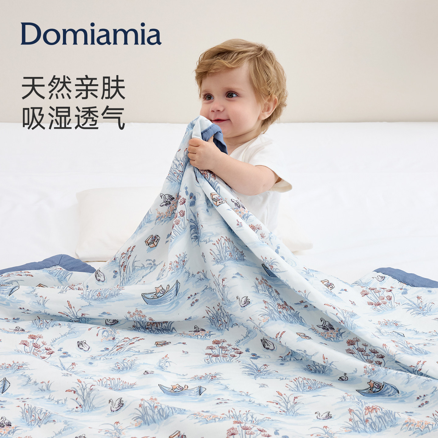 Domiamia婴儿盖毯四层竹棉纱布宝宝被子新生儿夏季夏凉被多功能毯