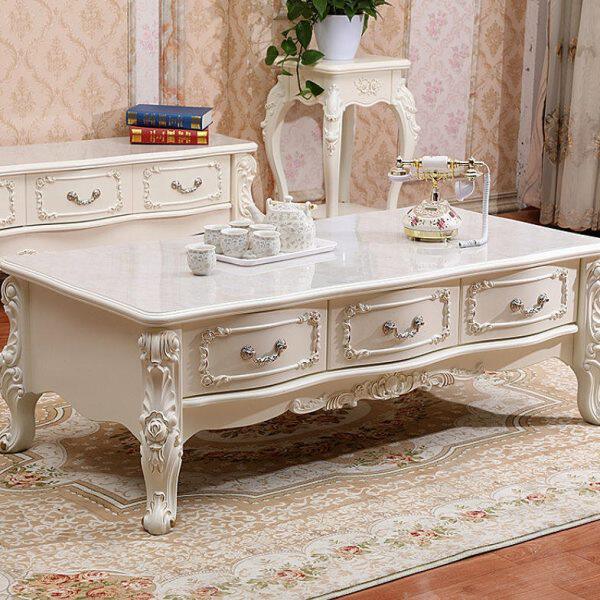 美式全实木茶几客厅家具小户型白色田园乡村地中海电视柜茶几组合