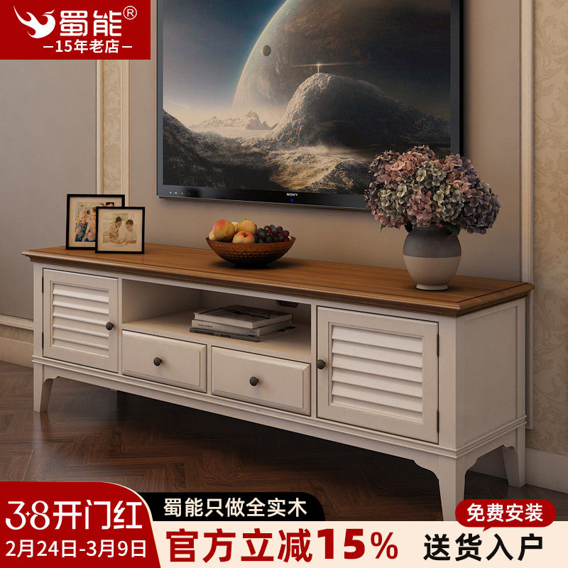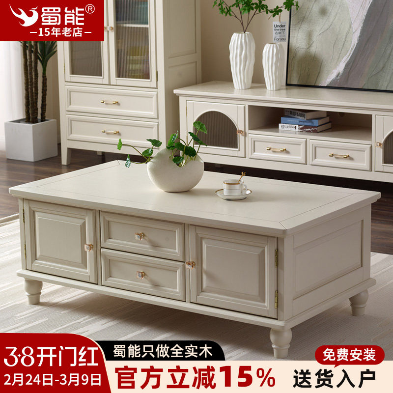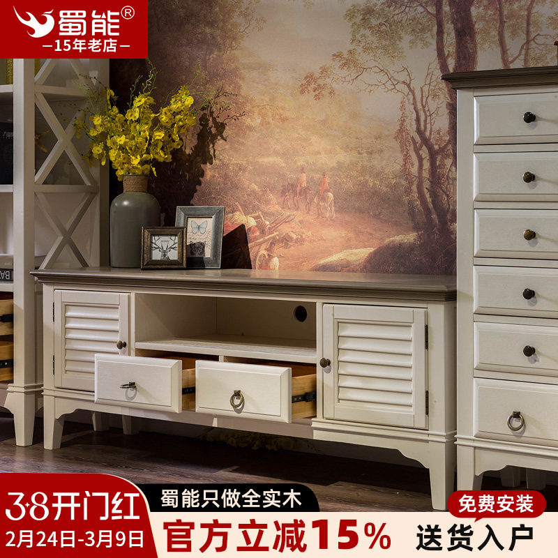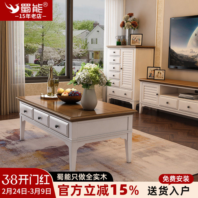 蜀能美式乡村韩式地中海奶油风大储物空间客厅实木茶几电视柜组合