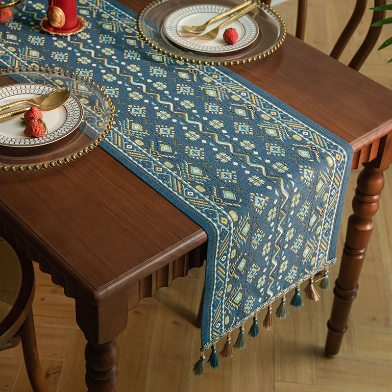 地中海复古提花桌旗布艺餐桌旗布茶几电视柜桌布餐桌布餐垫长条布