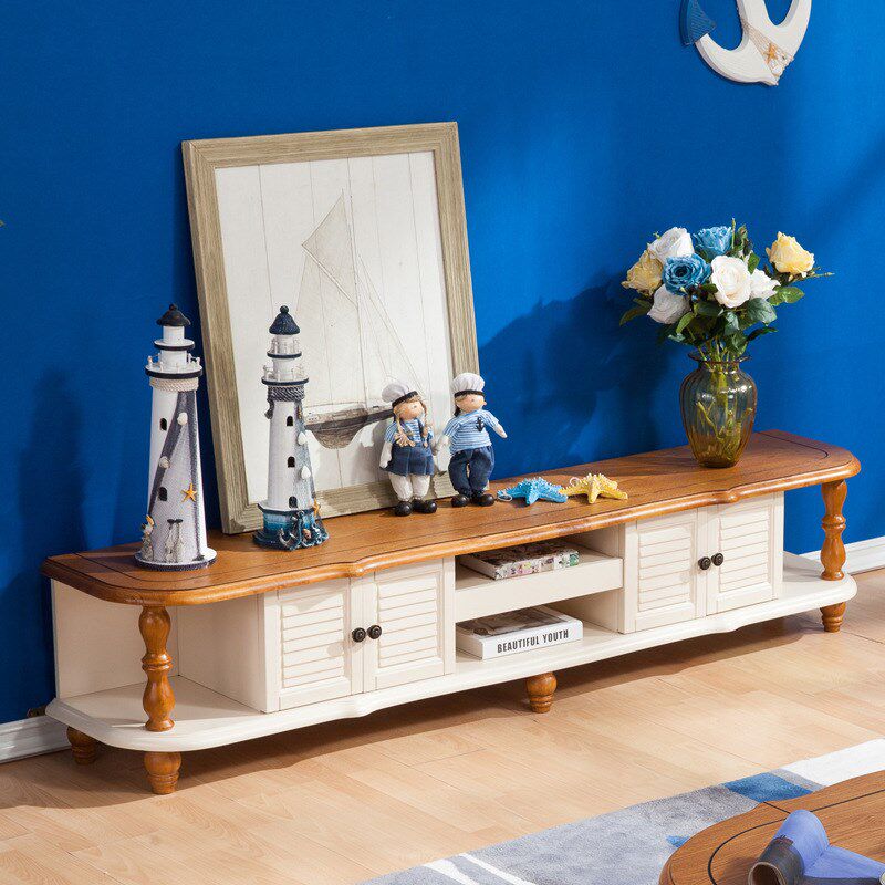 地中海客厅全实木电视柜茶几组合小户型可伸缩储物客厅柜田园家具