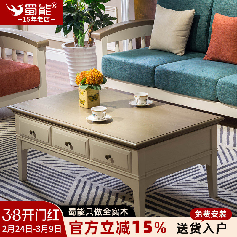 美式全实木茶几客厅现代简约小户型田园乡村地中海电视柜茶几组合