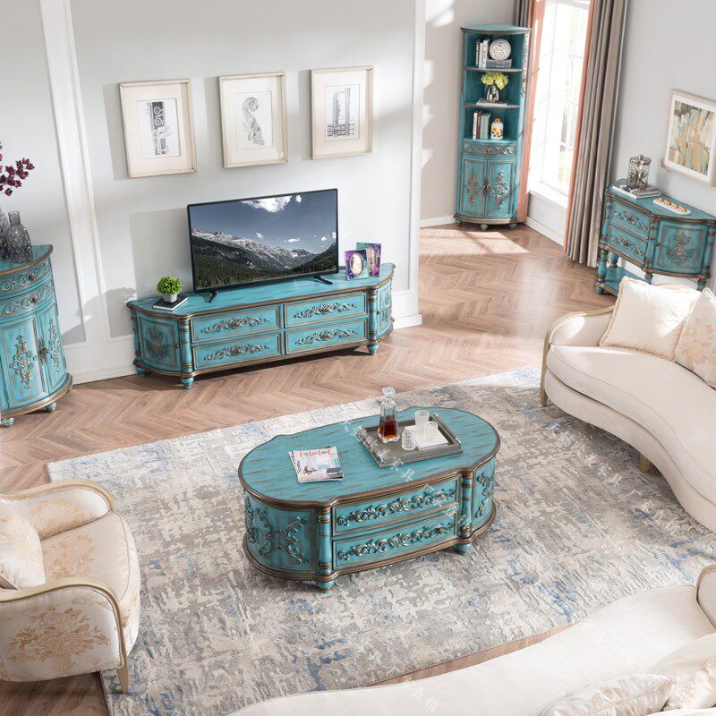 欧美式客厅1米4茶几电视柜组合复古E地中海视听柜弧形多功能咖啡