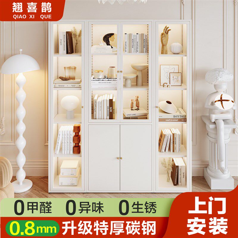 钢制书柜带玻璃门家用客厅玩具收纳柜防尘置物儿童铁艺书架展示柜