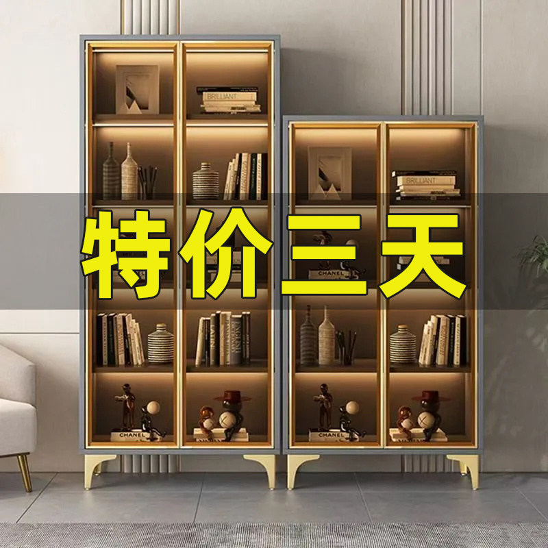 轻奢书柜带玻璃门客厅酒柜定制家用靠墙手办展示柜书架子一体组合