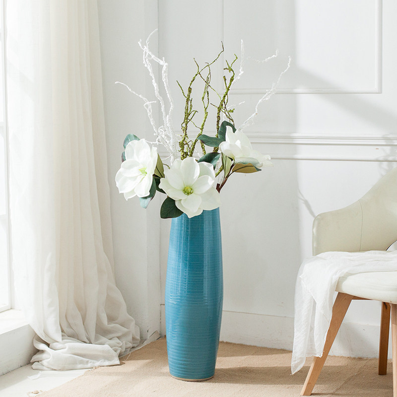 落地花瓶干花装饰摆件客厅插花大号陶瓷高瓶子美式简约仿真花套装