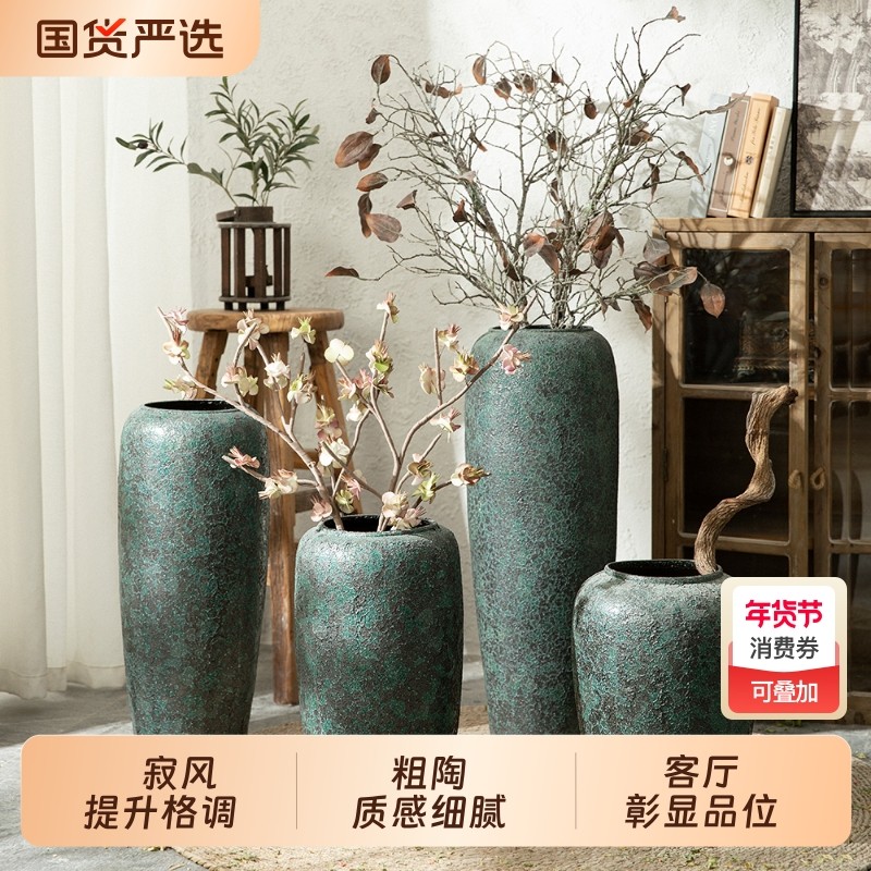 景德镇手工落地花瓶套装餐厅仿真花器客厅大号陶罐瓷器装饰品摆件