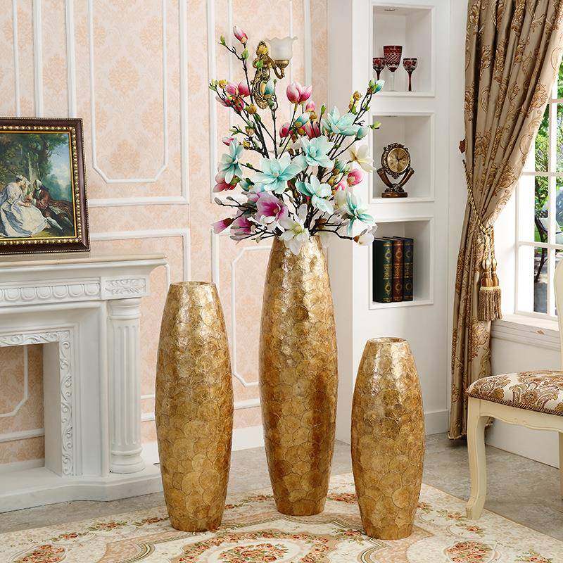 贝壳落地大摆件花瓶仿真花套装现代轻奢客厅干花电视柜装饰橄榄瓶