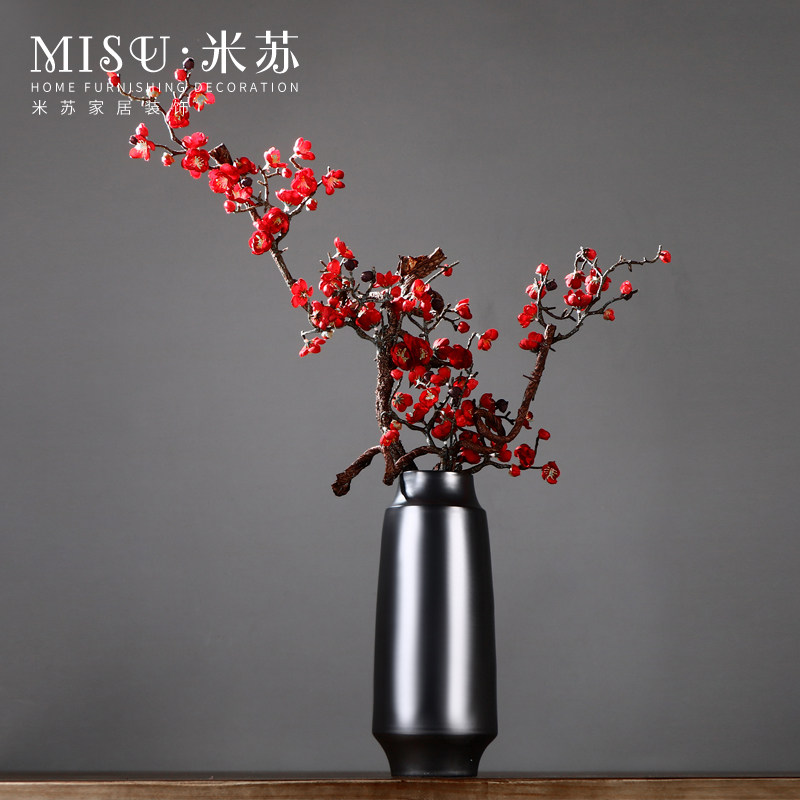 仿真梅花陶瓷花瓶套装整体花艺摆件客厅落地假花插花电视柜装饰品