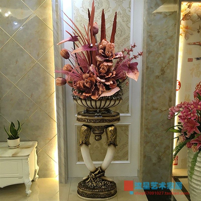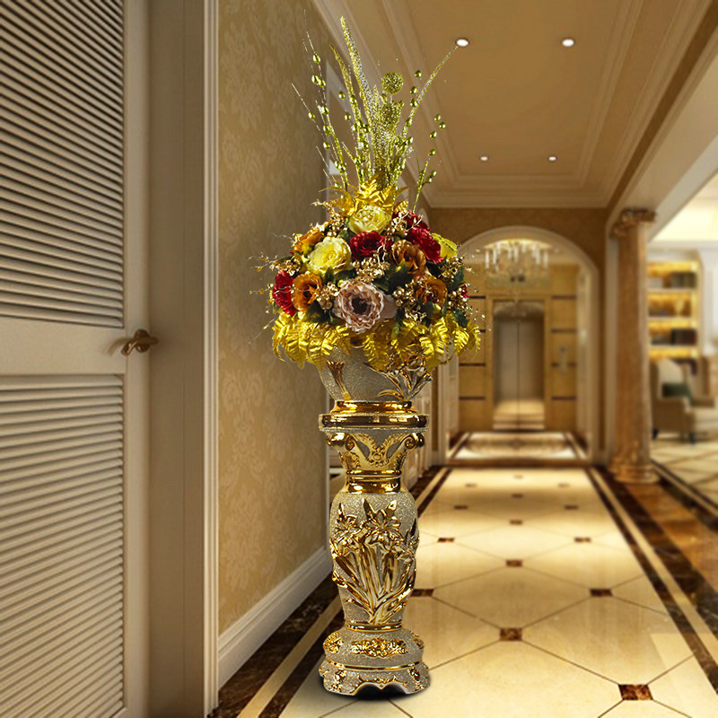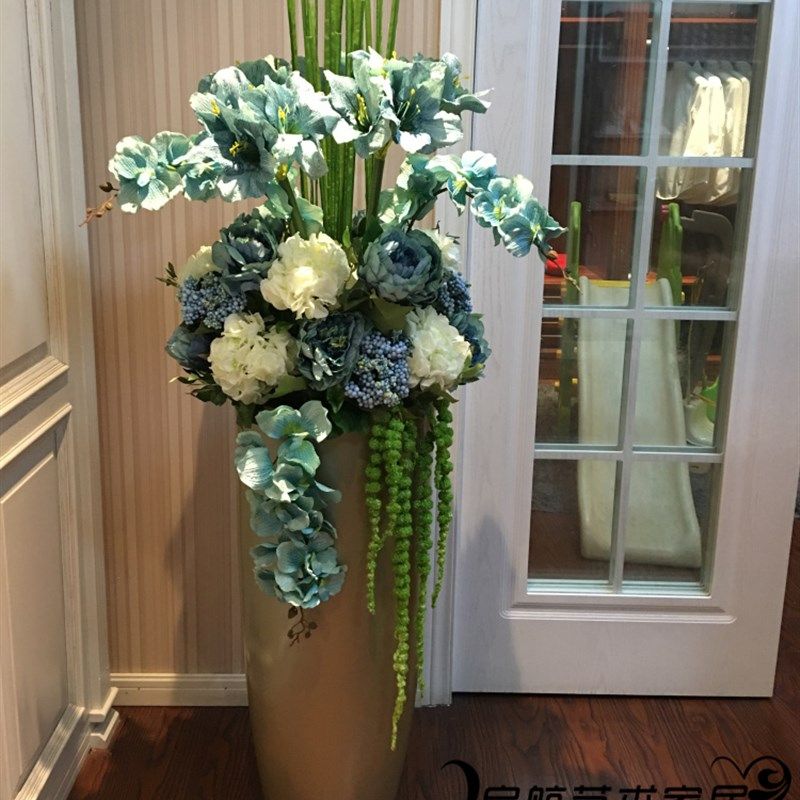 欧式落地花瓶客厅大号插花摆件仿真花套装装饰酒店玄关高干插花大