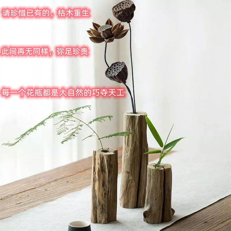 荷花玉兰仿真花客厅装饰干花摆件餐桌面插花落地摆设实木花瓶套装