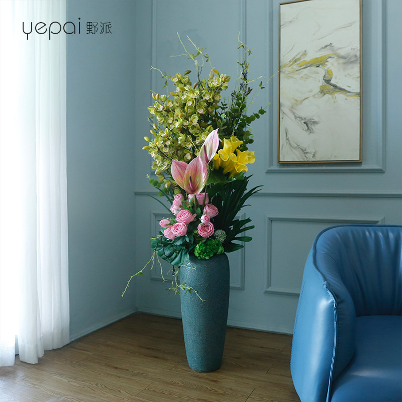 大型落地仿真花套装特色花瓶中式花艺大型商场酒店大厅门口装饰花