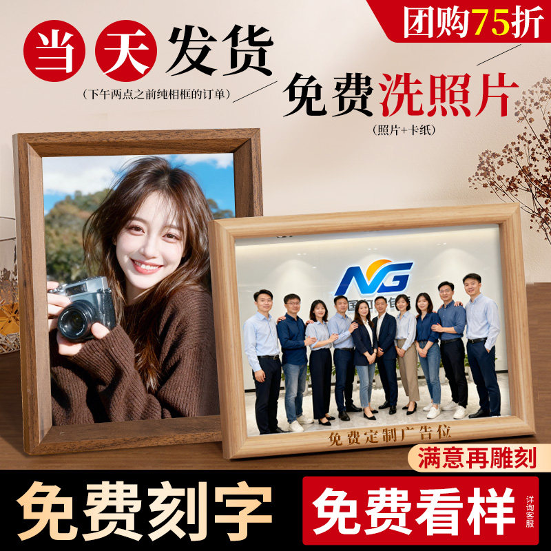 实木相框摆台洗照片做成相册高级感6寸7寸8加打印diy定制挂墙空框