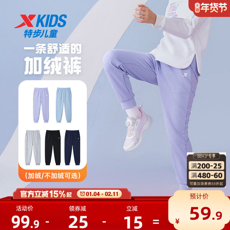 特步童装女童长裤儿童运动裤2025年秋冬新款大童加绒裤子冬装卫裤