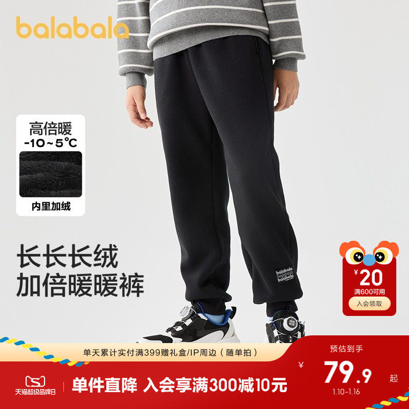巴拉巴拉童装男童加绒长裤儿童裤子2025秋冬装女童运动休闲裤百搭