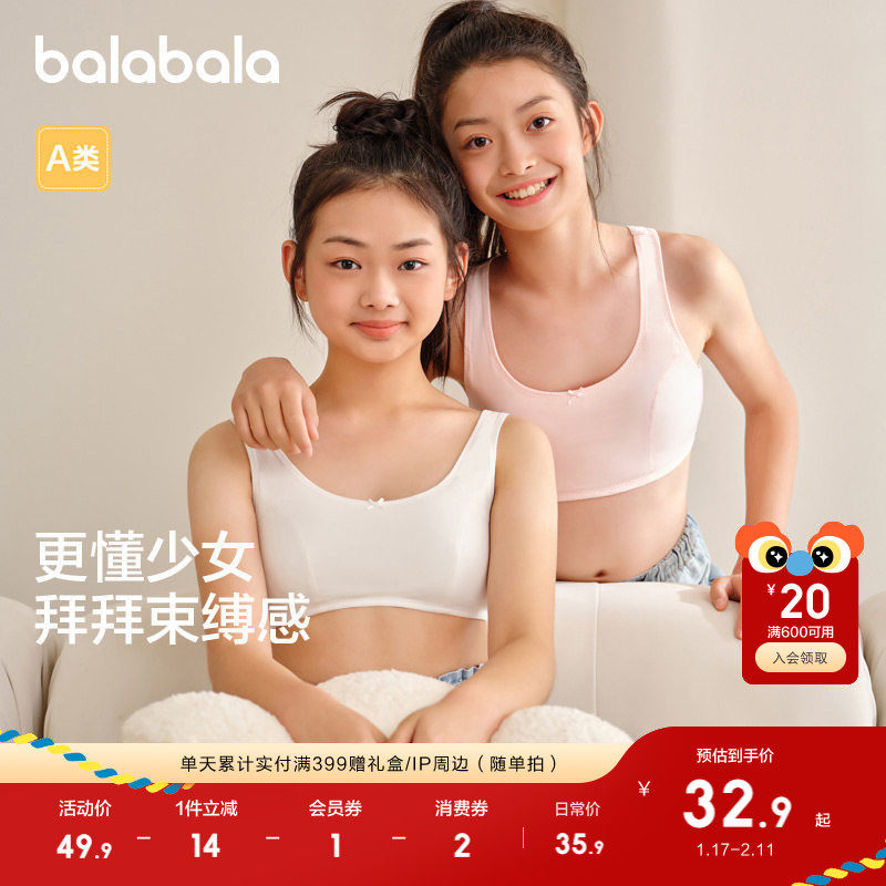 巴拉巴拉儿童女童内衣发育期少女文胸胸衣背心无痕防凸点学生中童