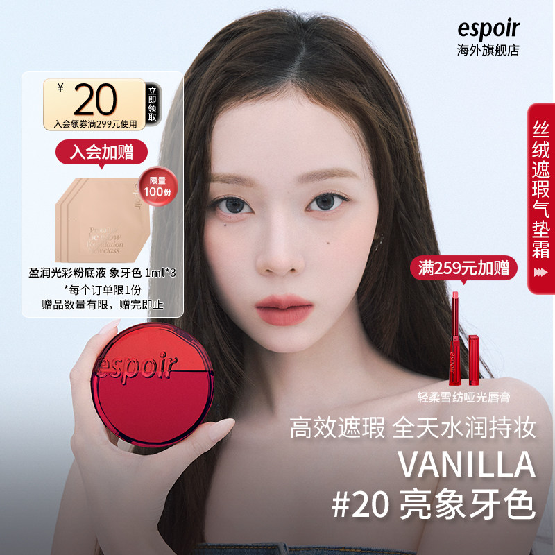 eSpoir艾丝珀专研丝绒遮瑕气垫霜红气垫粉底液控油干皮持久不脱妆