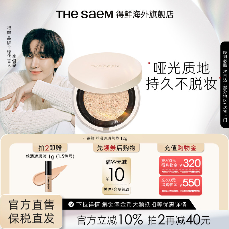 The Saem得鲜丝滑遮瑕气垫持久不脱妆控油粉底液干皮养肤秋冬滋润