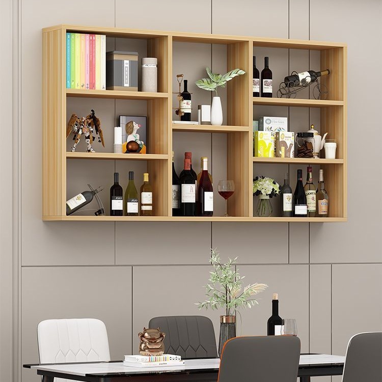 墙上酒架壁挂酒杯架悬挂吊柜餐厅墙壁墙上现代实木格子储物架酒柜