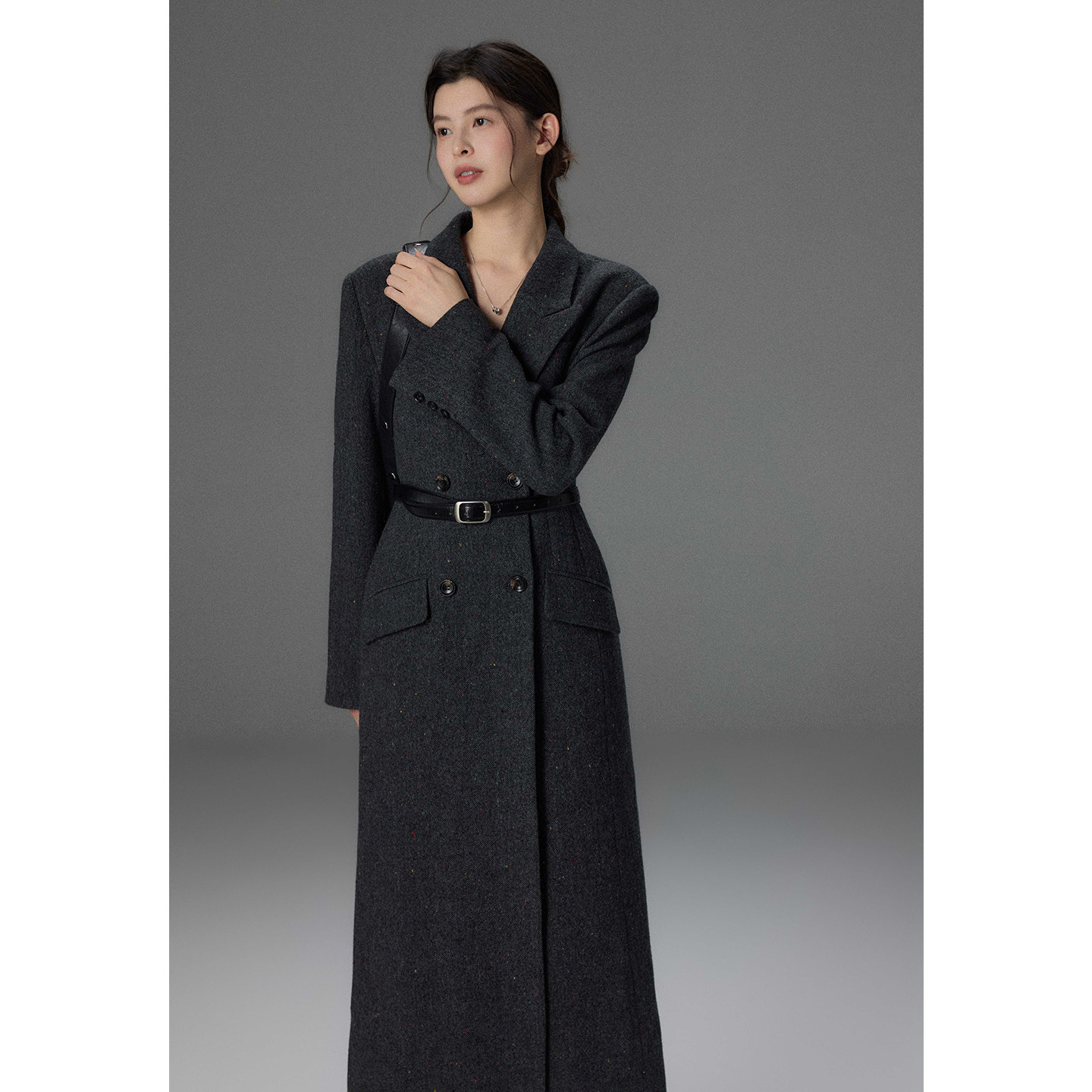 贰羊设计【格叙】高级感双排扣西装毛呢外套女秋冬季收腰长款大衣