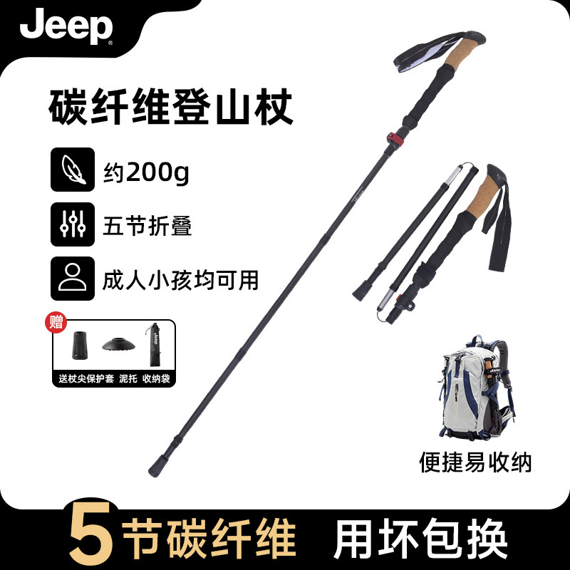 JEEP碳纤维登山杖碳素超轻伸缩折叠拐杖男女爬山专业户外徒步手杖