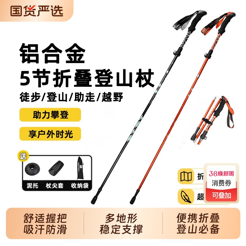 成人专业户外折叠登山杖徒步伸缩超轻无碳素拐手杖男女款爬山装备