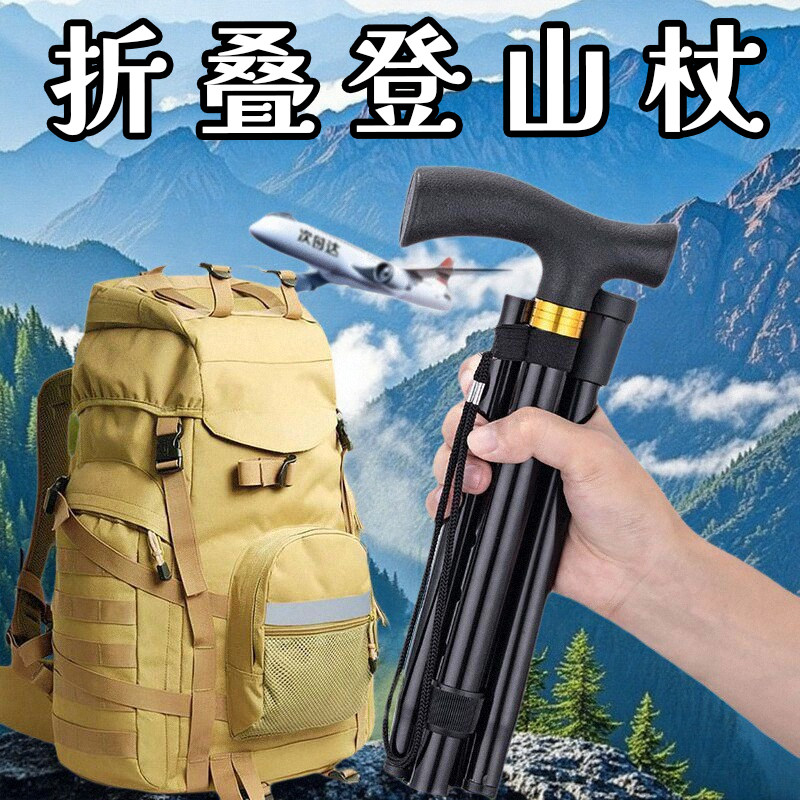 多功能登山杖 碳素 超轻 伸缩 户外折叠钛合金T行山杖登山棍手杖