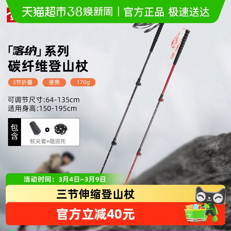 牧高笛征途碳纤维碳素超轻伸缩成人儿童女专业户外徒步登山杖手杖