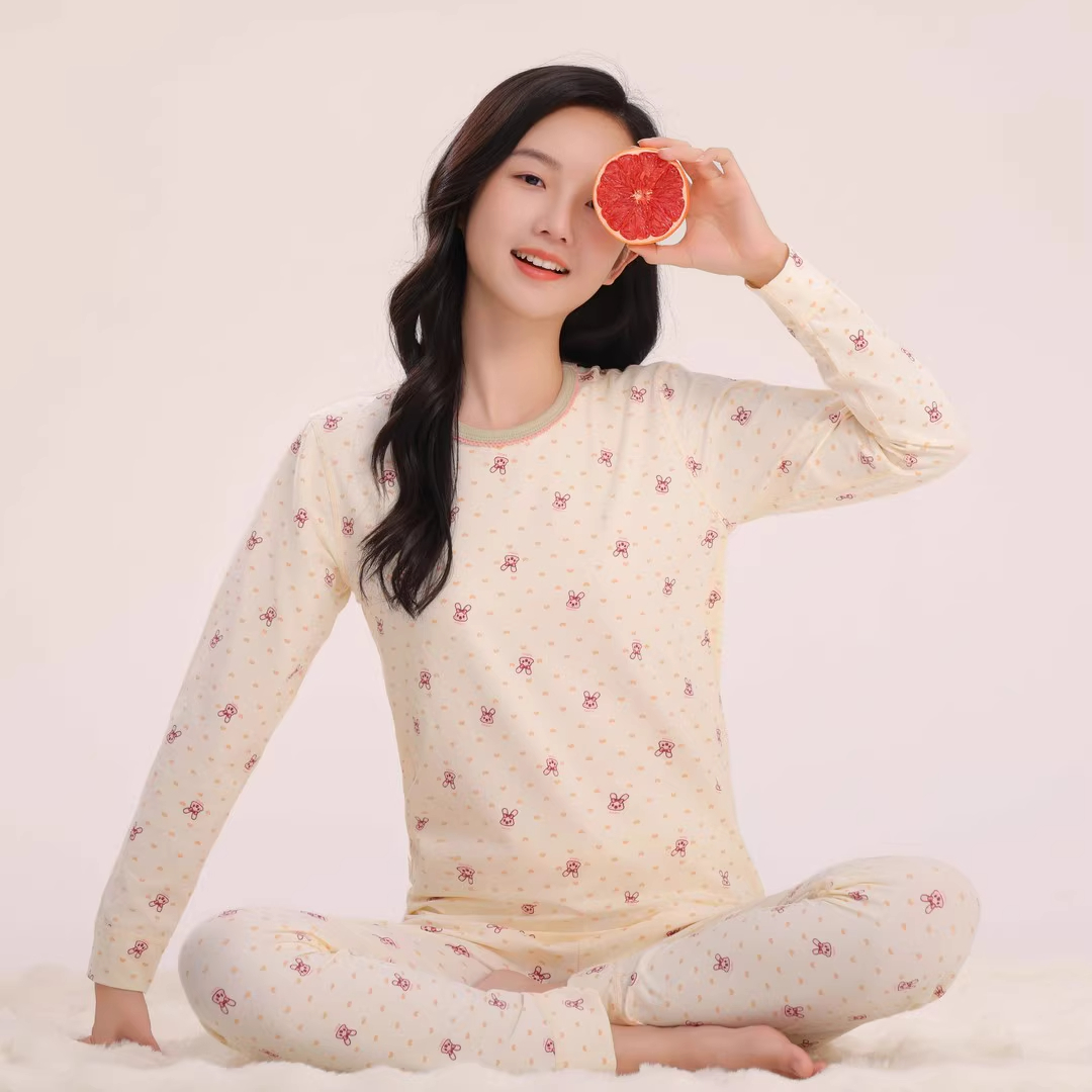 秋衣秋裤女士纯棉套装少女款可爱圆领全棉保暖内衣学生贴身棉毛衫