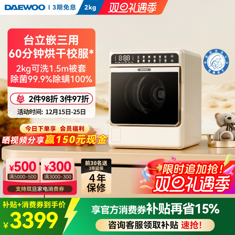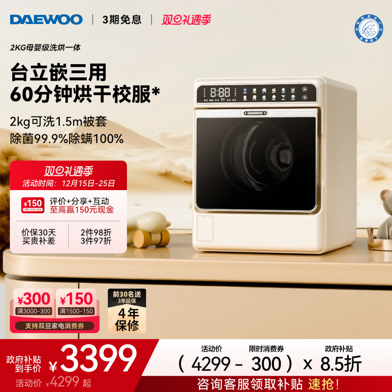 大宇迷你小型婴儿童宝宝洗衣机洗烘一体全自动高温除菌除螨MW20H
