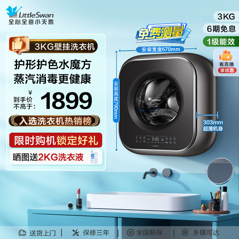 小天鹅3kg迷你洗衣机宝宝母婴除菌儿童婴儿小型全自动壁挂TG30M60
