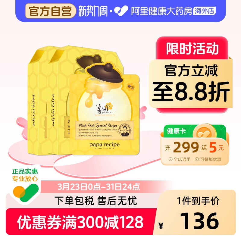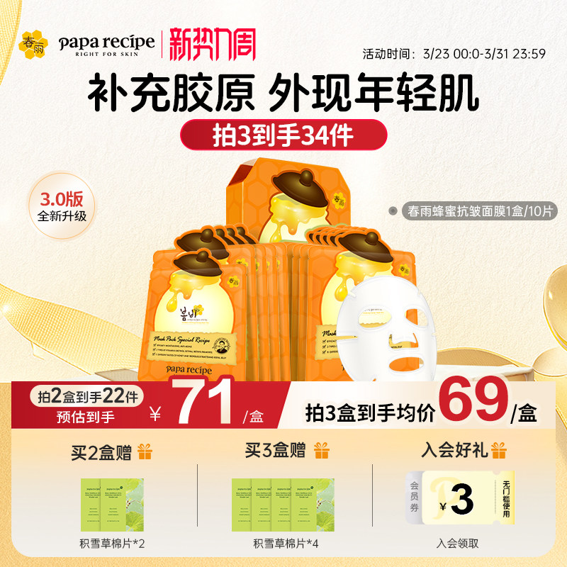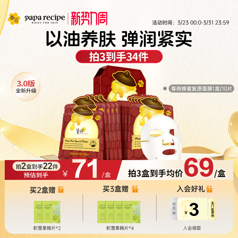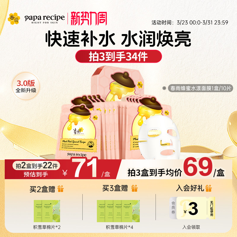 【百亿补贴】韩国paparecipe春雨蜂蜜面膜25g*3片湿舒缓去角质