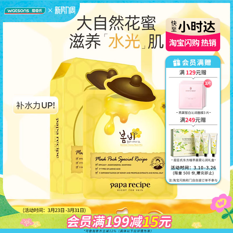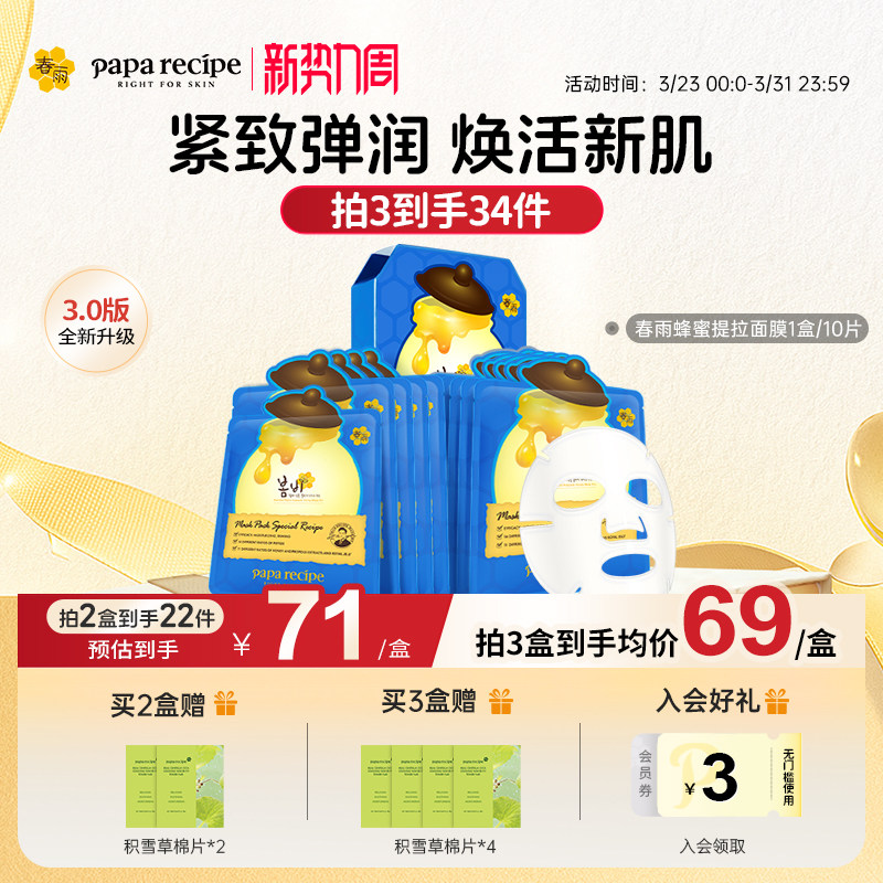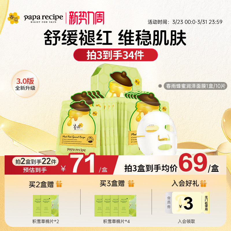 【U先试用】韩国paparecipe春雨蜂蜜面膜25g*3片+10元回购券