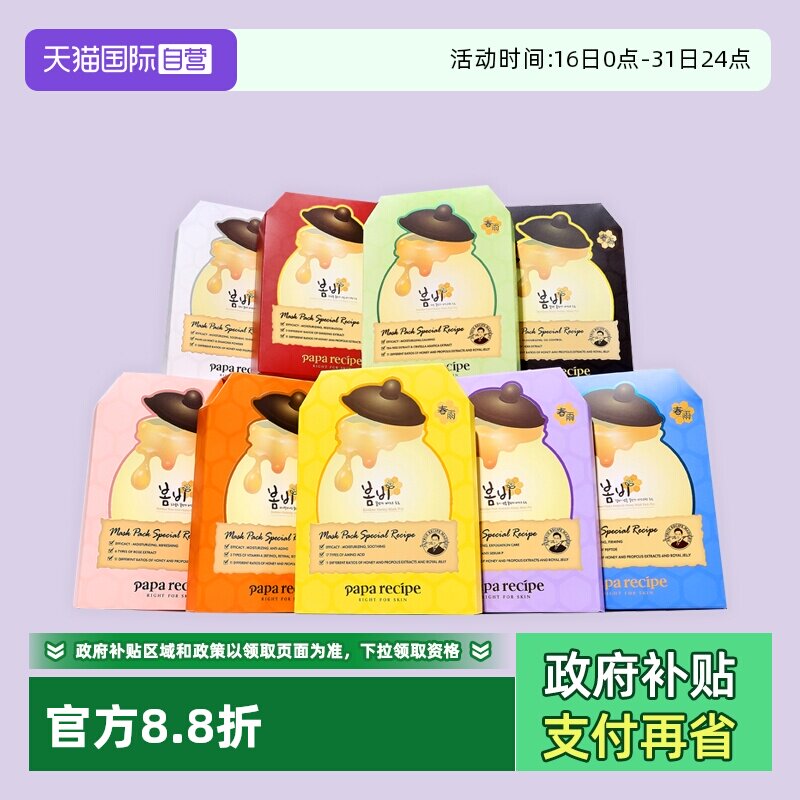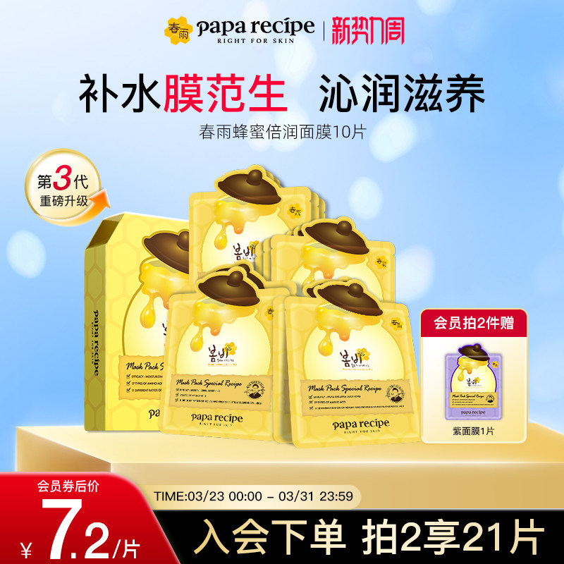 【自营】papa recipe/春雨面膜蜂蜜补水黄春雨修护10片【临期】