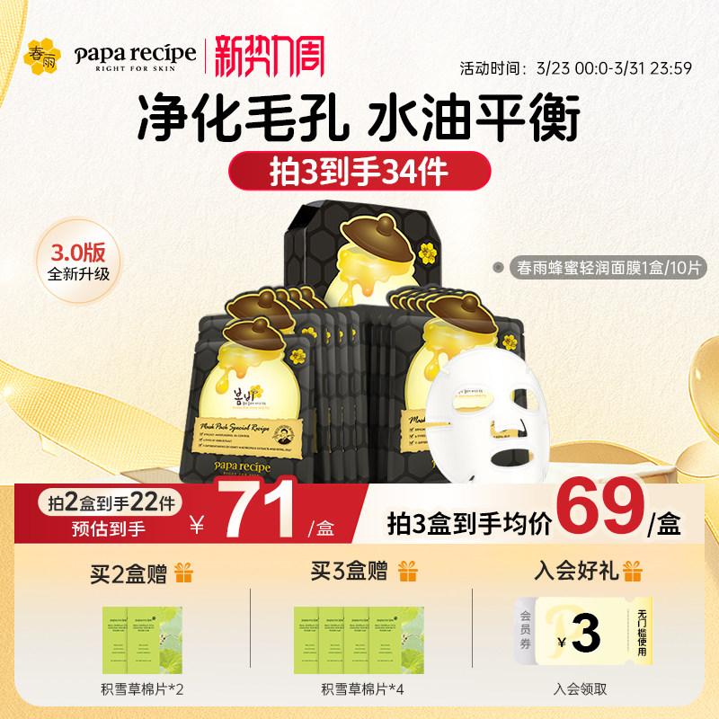 papa recipe/春雨黑色清洁毛孔蜂蜜10片补水保湿温和控油面膜1盒