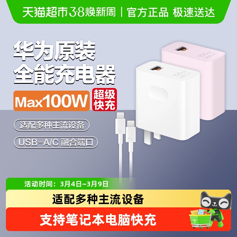 华为原装充电器超级快充100w全能充mate80pro/pura80手机通用正品