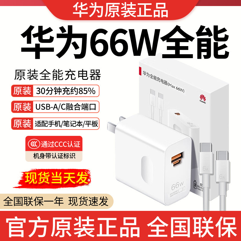 华为原装充电器66W全能原装正品Mate70/Mate60/mate50/Pura70/Pura80/Nova Filp/Nova9/Nova12超级快充充电头