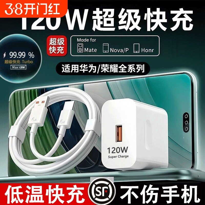 官方正品超级适用华为荣耀充电器120快充头Mate60/30pro/p50/40/nova11/10/9/8数据线66摩梦原装闪充氮化镓
