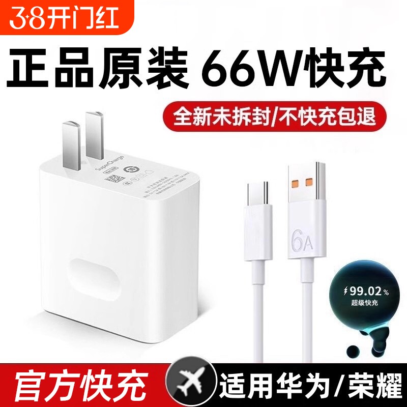 66W适用华为荣耀充电器120W手机100W快充头mate60 p70p50p40p30 pro nova12/11/10/9/8数据线6A原装快充typec