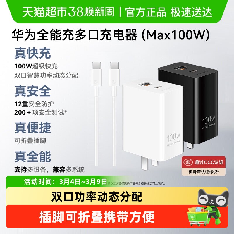 华为原装充电器100w多口全能充mate80pro/pura80快充手机平板通用