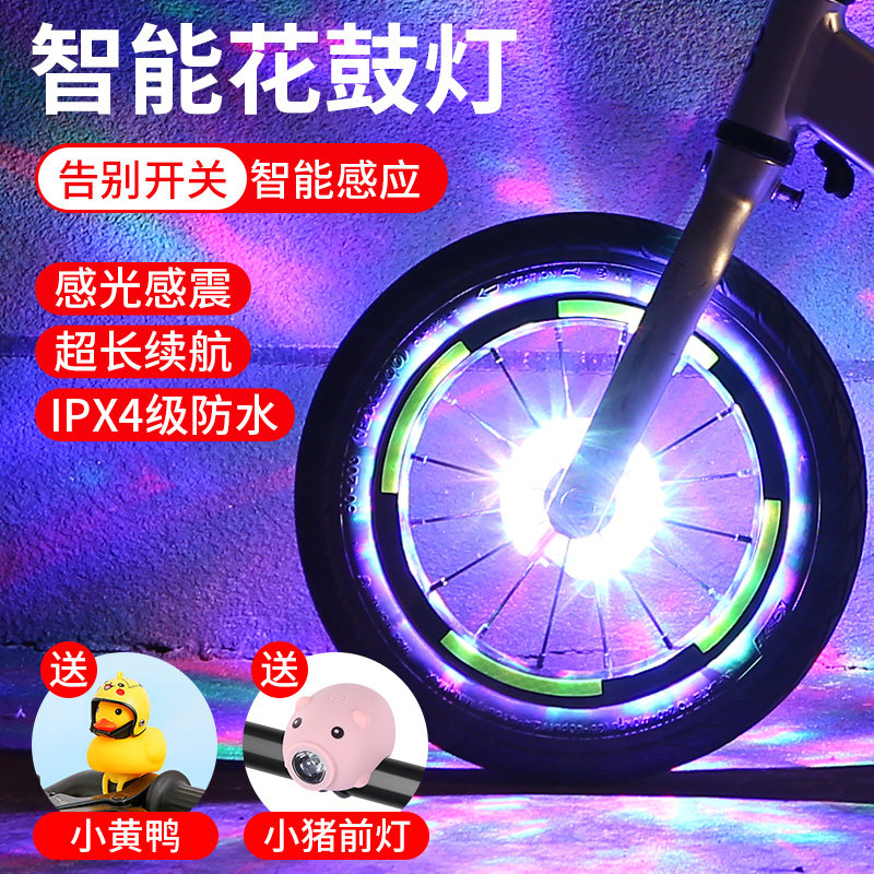儿童自行车灯夜骑灯花鼓灯平衡车风火轮夜光灯感应炫彩车轮灯闪光