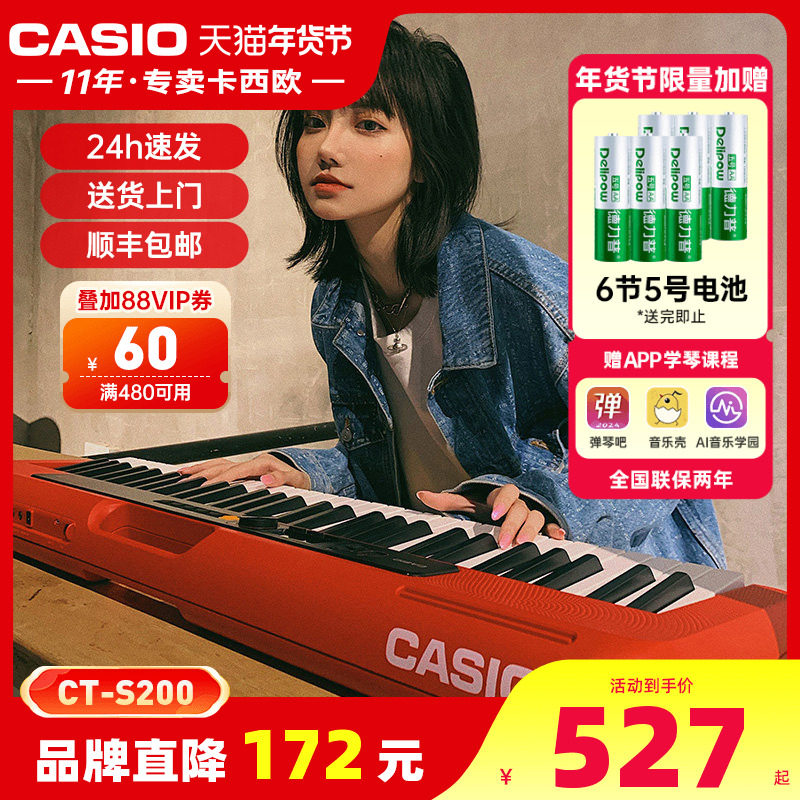 Casio卡西欧CT-S200乐器旗舰店电子琴61键便携式网红爆款小花琴