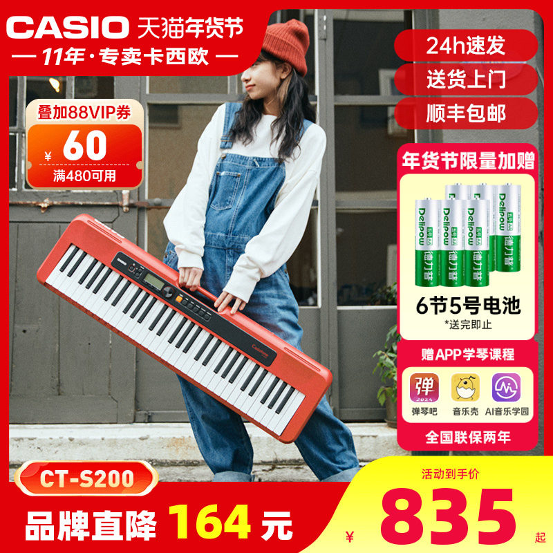 casio卡西欧电子琴CT-S200儿童初学者成年专业61键便携幼师电子琴