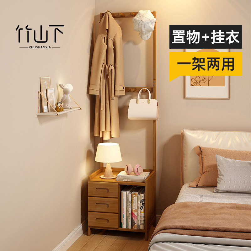 床头柜挂衣架一体落地家用卧室出租屋床边放衣服省空间神器置物架