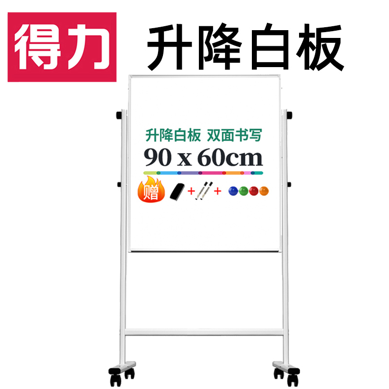得力白板支架式升降可移动办公会议可擦写翻转白板写字板家用儿童教学双面磁性记事白板留言板顺滑易擦易写