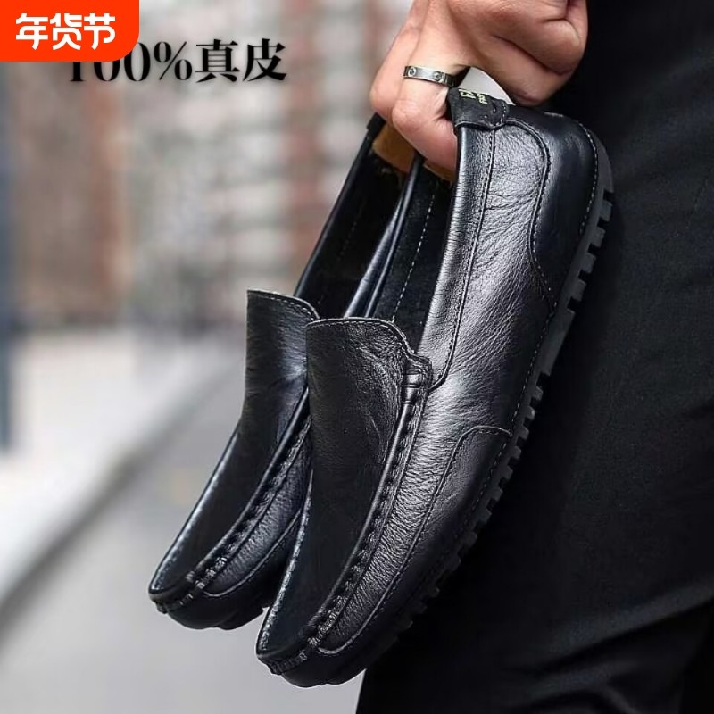 真皮乐福鞋男头层牛皮四季百搭皮鞋懒人一脚蹬软底软面驾车豆豆鞋