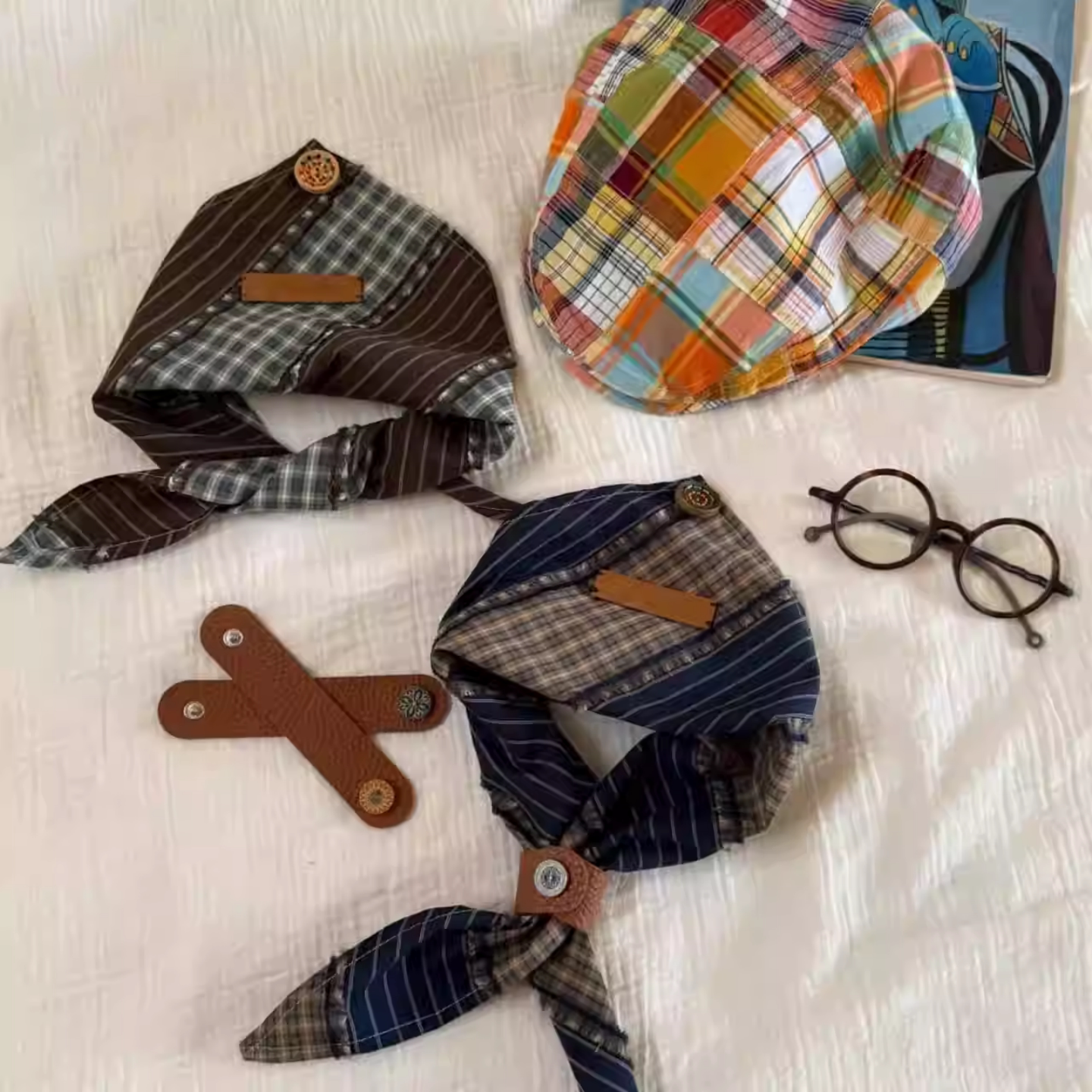 日系格子三角领巾时尚百搭头巾男女假领子舒适护颈连帽披肩小围巾